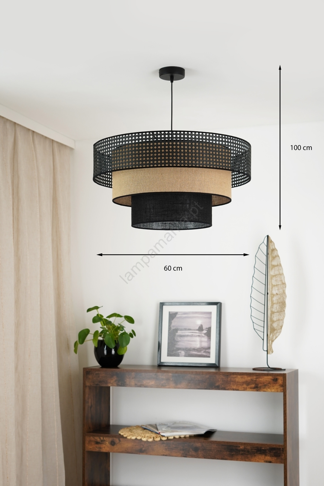 Brilagi - Candeeiro suspenso em cabo DAKOTA LUNETA 1xE27/15W/230V diâmetro 60 cm preto/ráfia