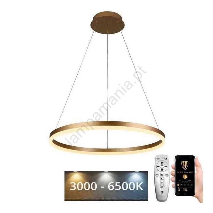 • Brilagi - Lustre LED dimerizável suspenso por cabo CIRCLE LED/70W/230V 3000-6500K Ø 60 cm dourado + controlo remoto