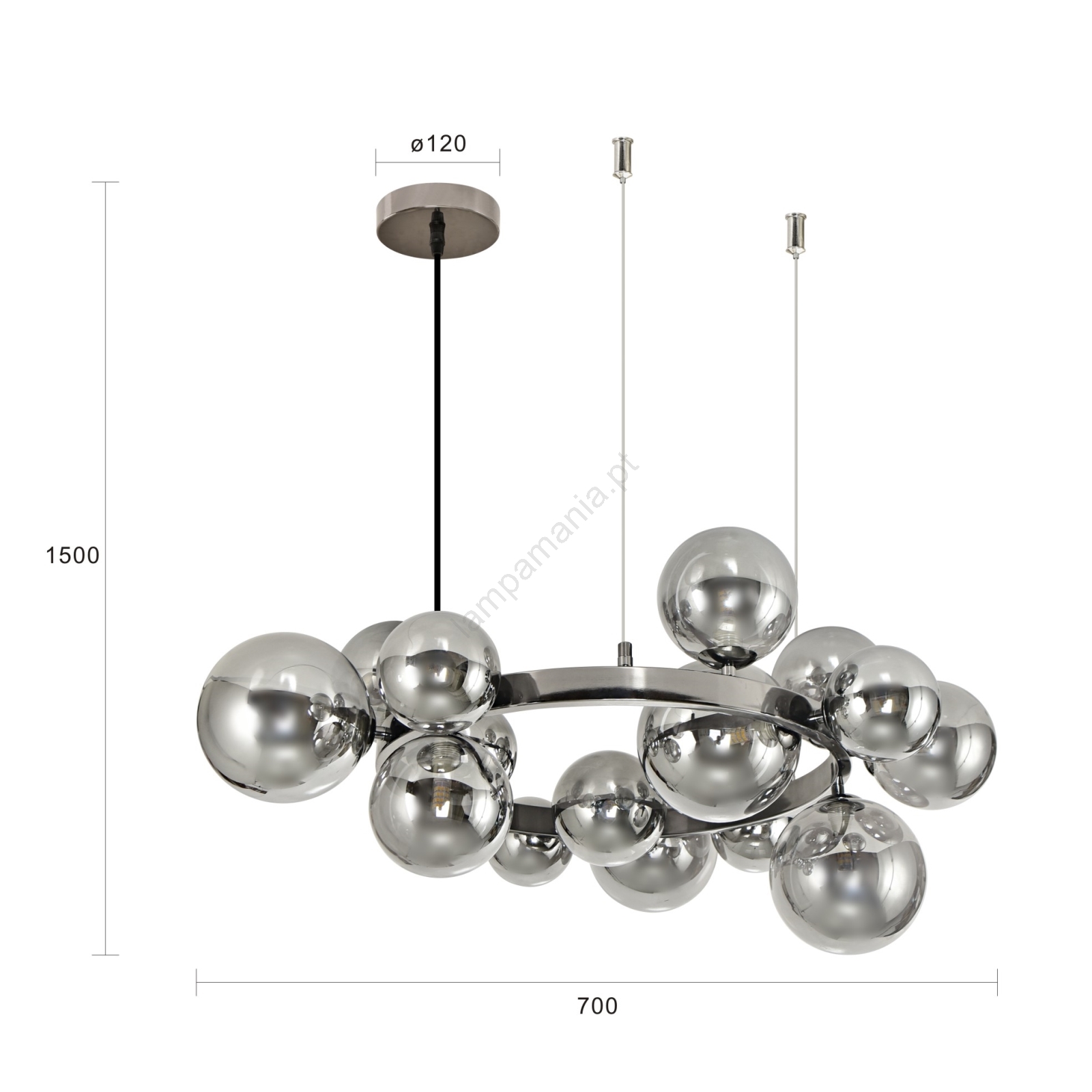 • Brilagi - Lustre LED suspenso por cabo MILLA 15xG9/3W/230V cromado preto/fumê