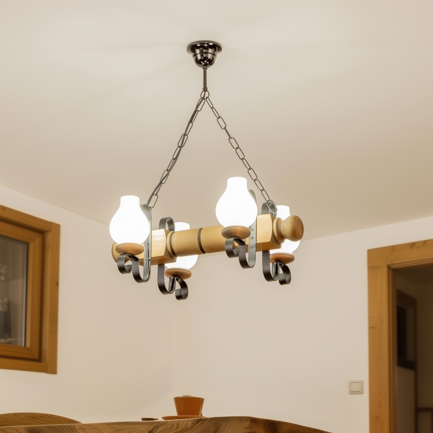 Brilagi - Candeeiro suspenso RUSTIC 4xE14/40W/230V faia