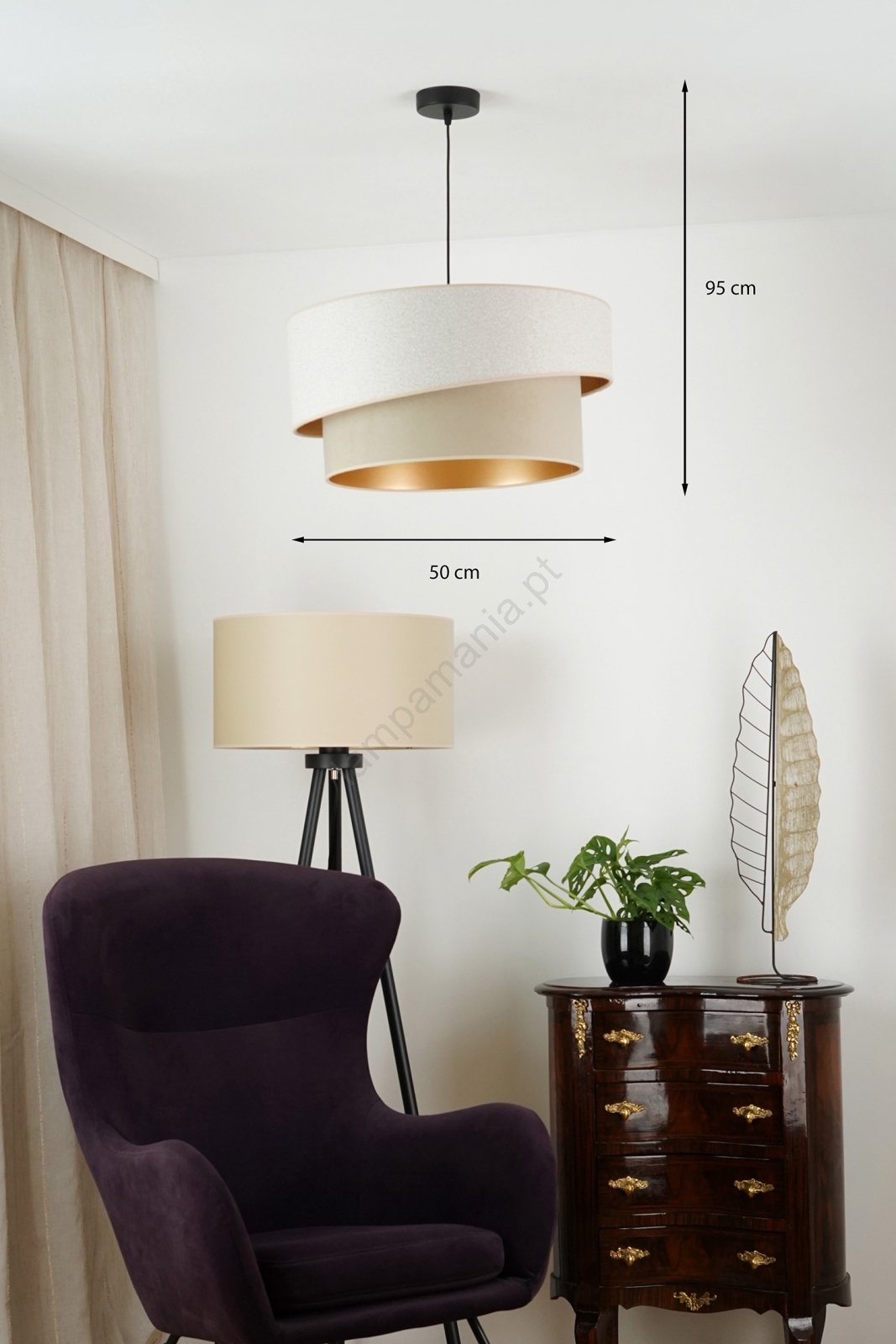 Brilagi - Candeeiro suspenso VEGAS SHINE 1xE27/15W/230V diâmetro 50 cm creme/bege caracteriza-se por um design agradável e funcional.  Uma lâmpada com casquilho E27 é adequada para a iluminação Aqui, pode comprar outras lâmpadas a preços vantajosos. Terá um complemento interessante para a sua casa.