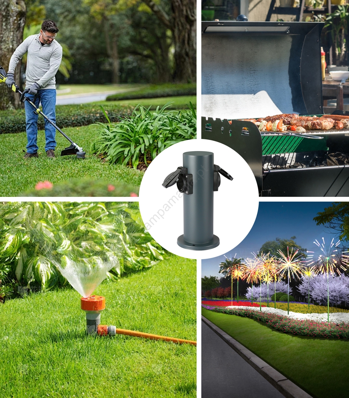 • O poste de tomada externo é uma solução prática para o seu jardim ou espaço ao ar livre, permitindo o acesso à energia elétrica fora de casa.