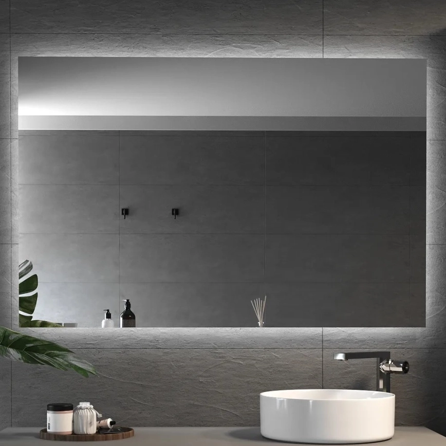 • Espelho de casa de banho sem moldura com função de aquecimento anti-embaçamento e iluminação LED.
