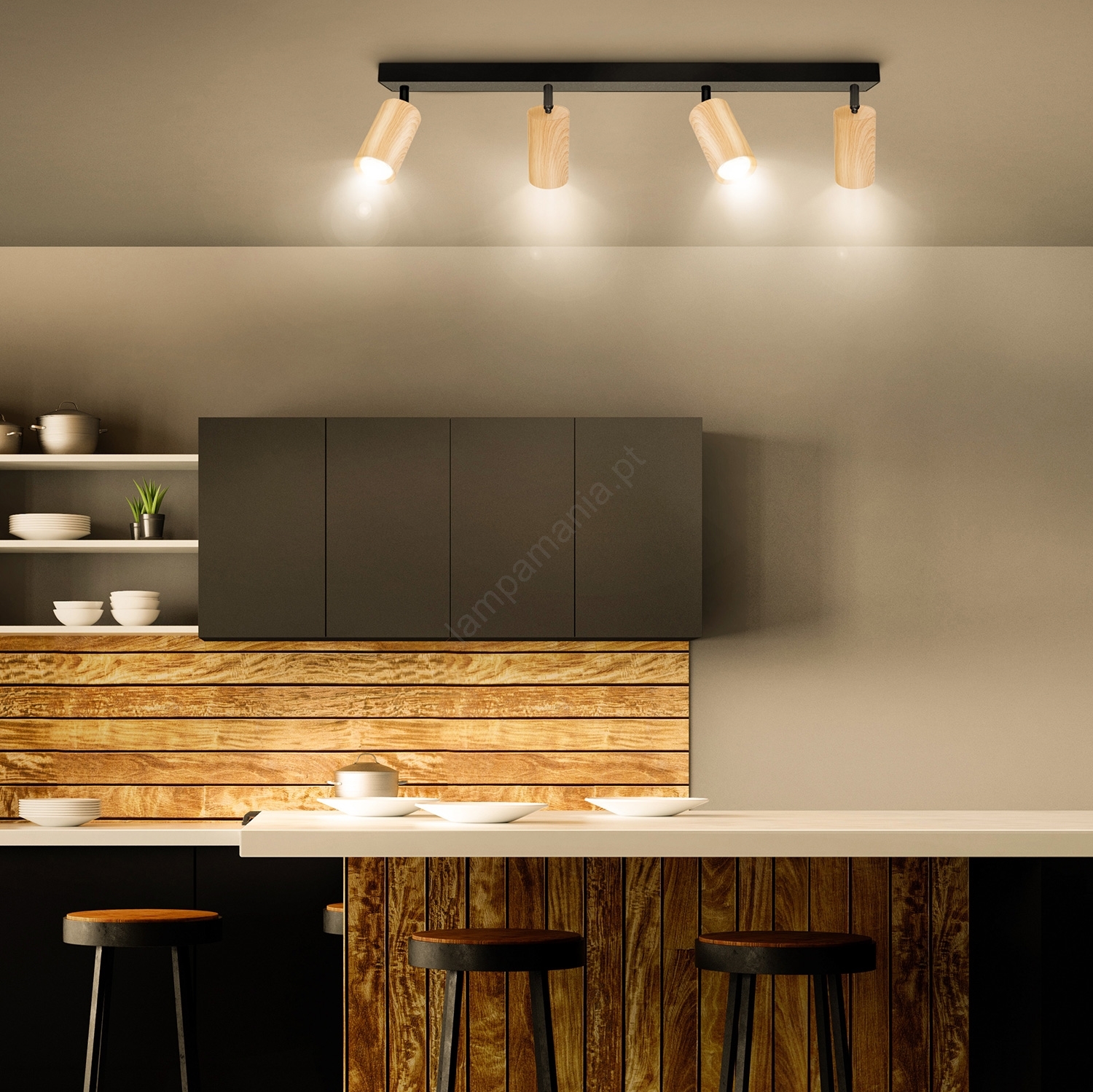 • Brilagi - Foco SELE 4xGU10/30W/230V preto/decoração em carvalho