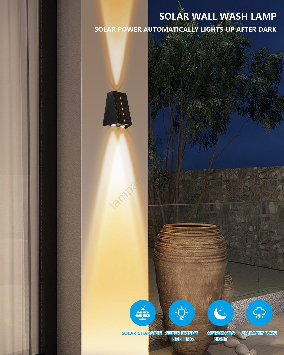 Brilagi - Luminária de parede solar LED PYRAMID LED/2W/3,2V 1300 mAh IP54