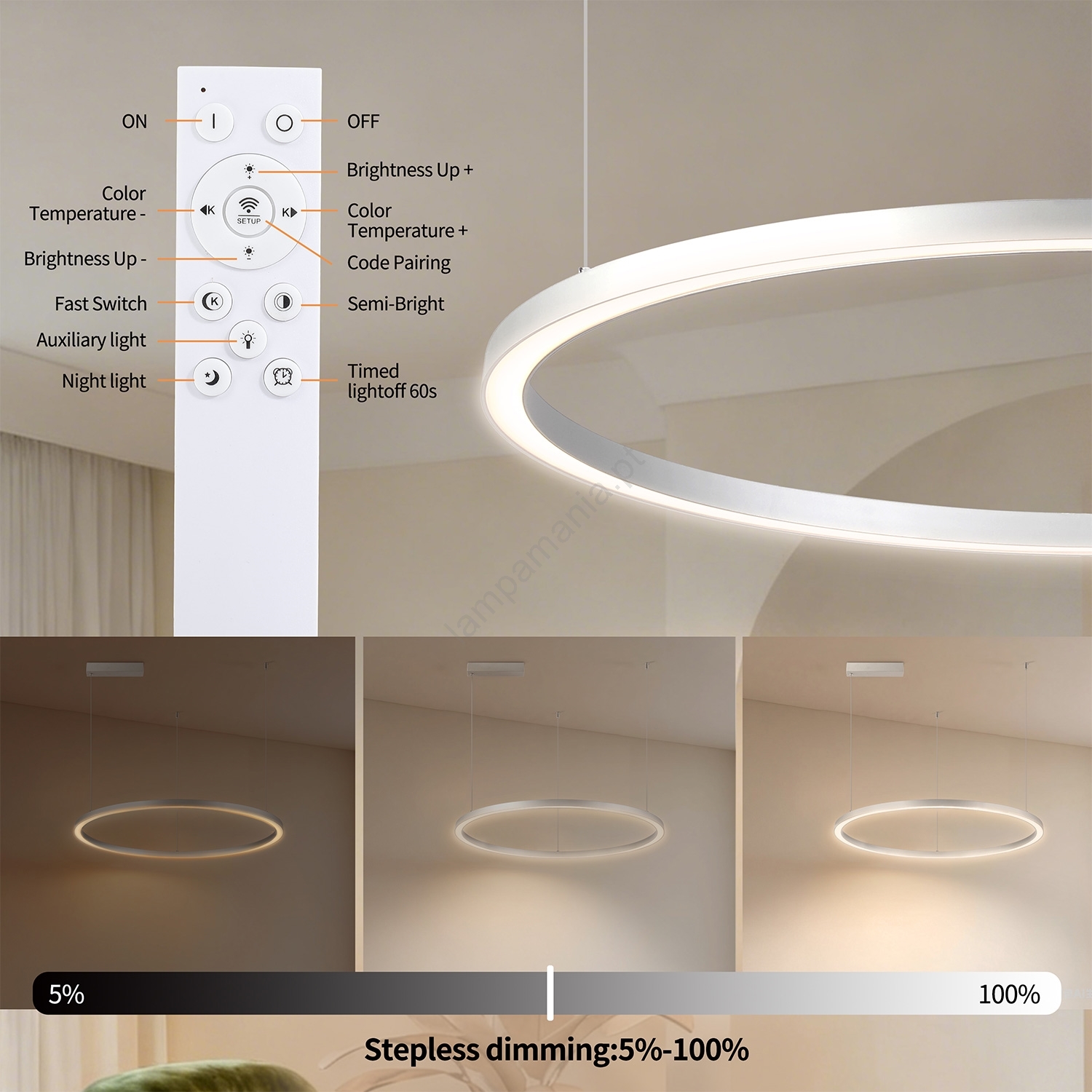• Brilagi - Lustre LED regulável suspenso por cabo PORTOFINO LED/60W/230V 3000-6000K Ø 80 cm branco + comando à distância