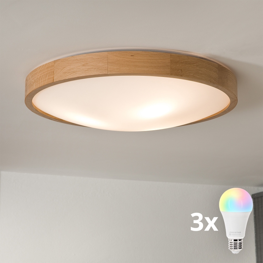 Brilagi - Candeeiro de tecto LED RGBW dimerizável CARVALHO SLIM 3xE27/15W/230V 2700-6500K Wi-Fi carvalho Ø 47 cm