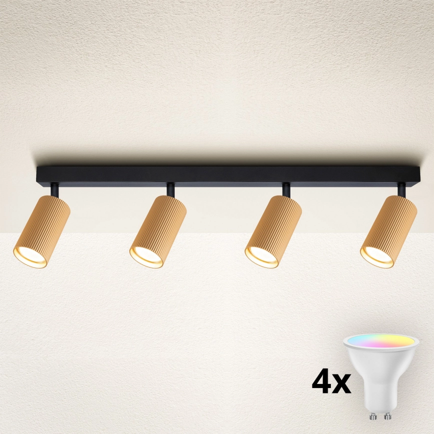 • Brilagi - Spot LED RGBW regulável SELE 4xGU10/6W/230V 3000K preto/dourado + controlo remoto