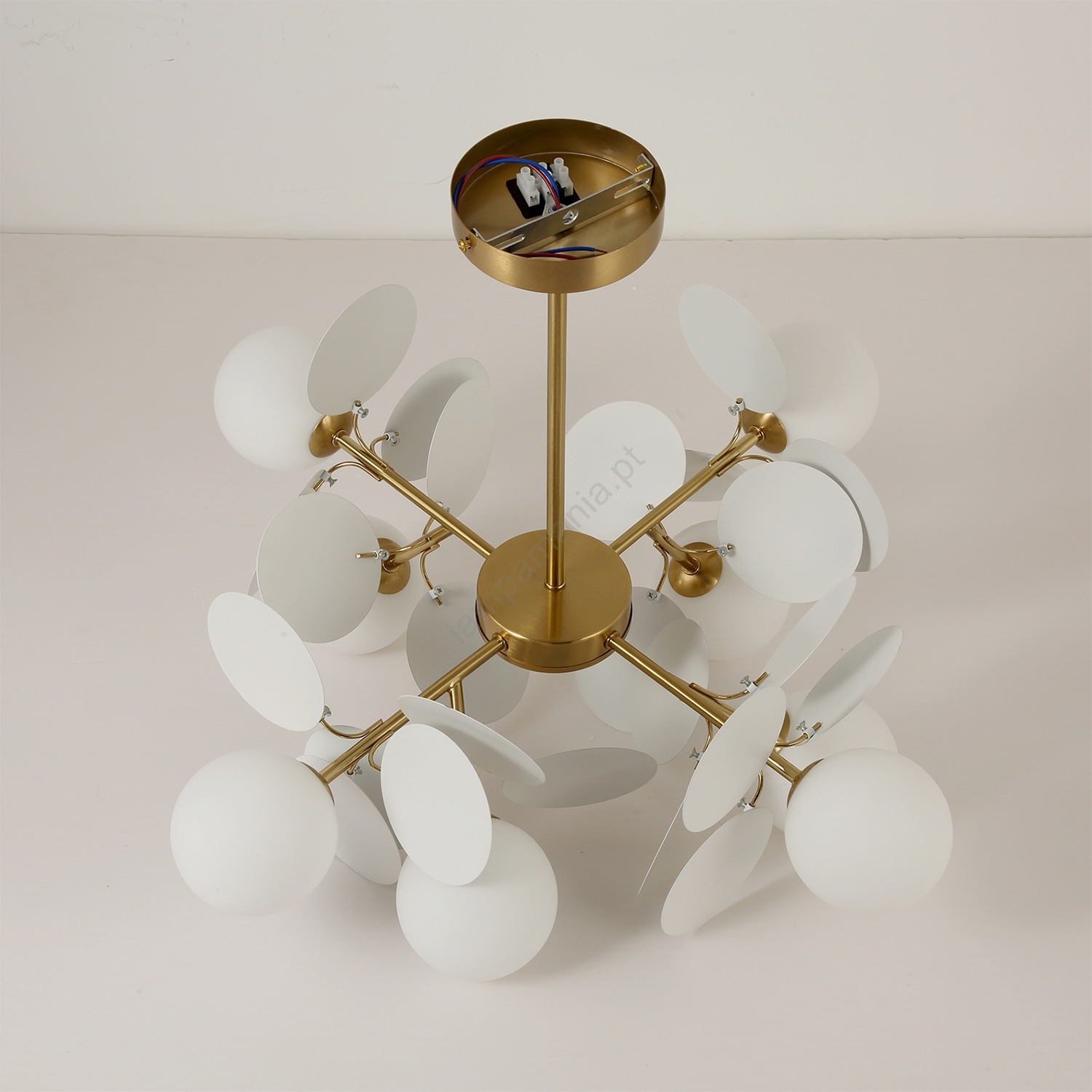 Brilagi - Lustre de haste BALMO 8xG9/9W/230V Ø 60 cm dourado/branco caracteriza-se por um design agradável e funcional.  Uma lâmpada com casquilho G9 é adequada para a iluminação Aqui, pode comprar outras lâmpadas a preços vantajosos. Terá um complemento interessante para a sua casa.