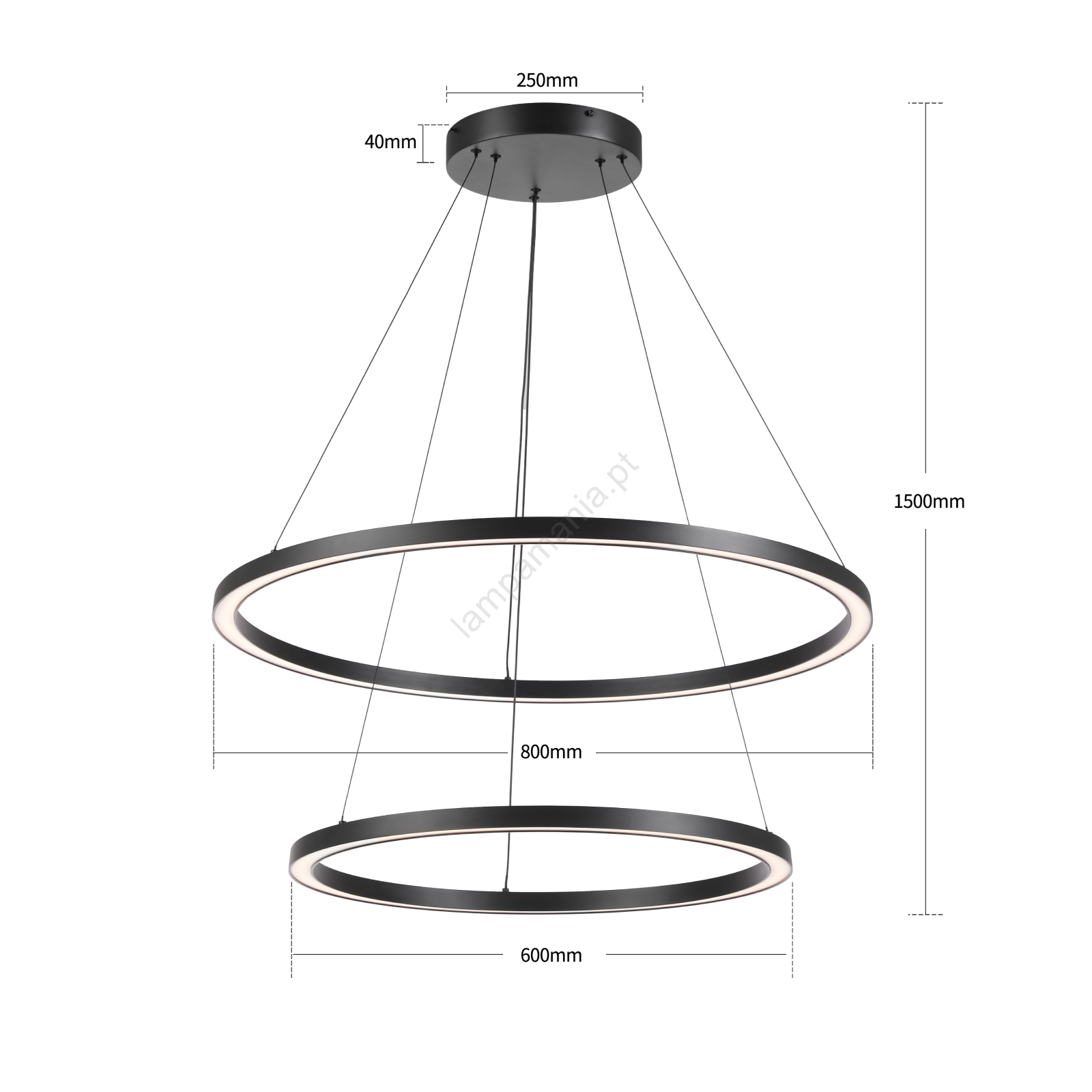• Brilagi - Luminária LED dimerizável suspensa por cabo PORTOFINO LED/60W/230V 3000-6000K Ø 80 cm preta + controlo remoto