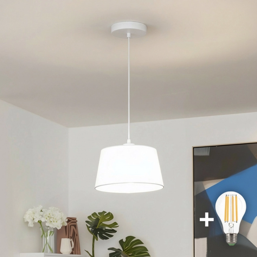 Brilagi - Lustre LED suspenso por cabo CERIA 1xE27/40W/230V diâmetro 25 cm branco