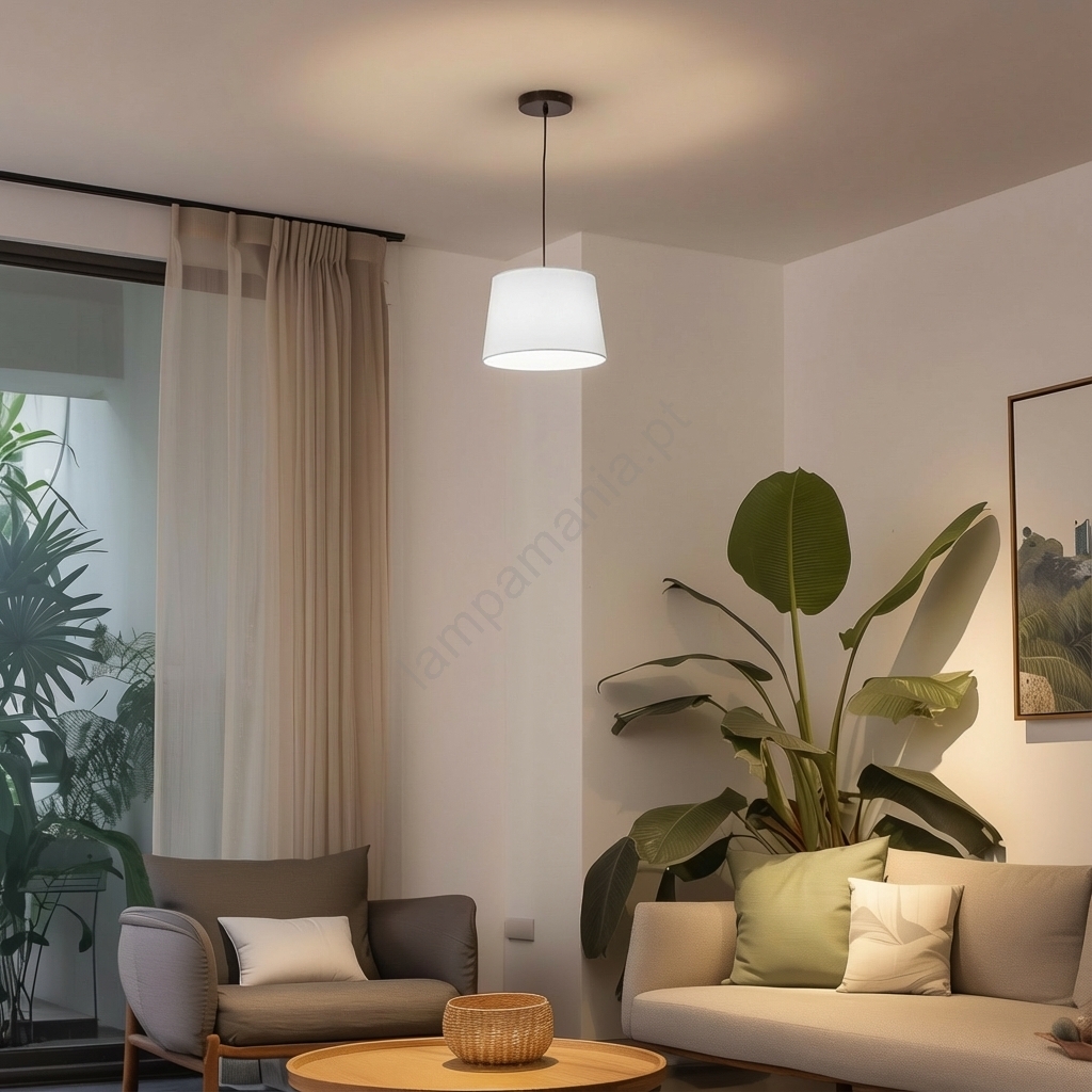 Brilagi - Lustre LED suspenso por cabo CERIA 1xE27/40W/230V, diâmetro 30 cm, branco caracteriza-se por um design agradável e funcional.  Uma lâmpada com casquilho E27 é adequada para a iluminação Aqui, pode comprar outras lâmpadas a preços vantajosos. Terá um complemento interessante para a sua casa.