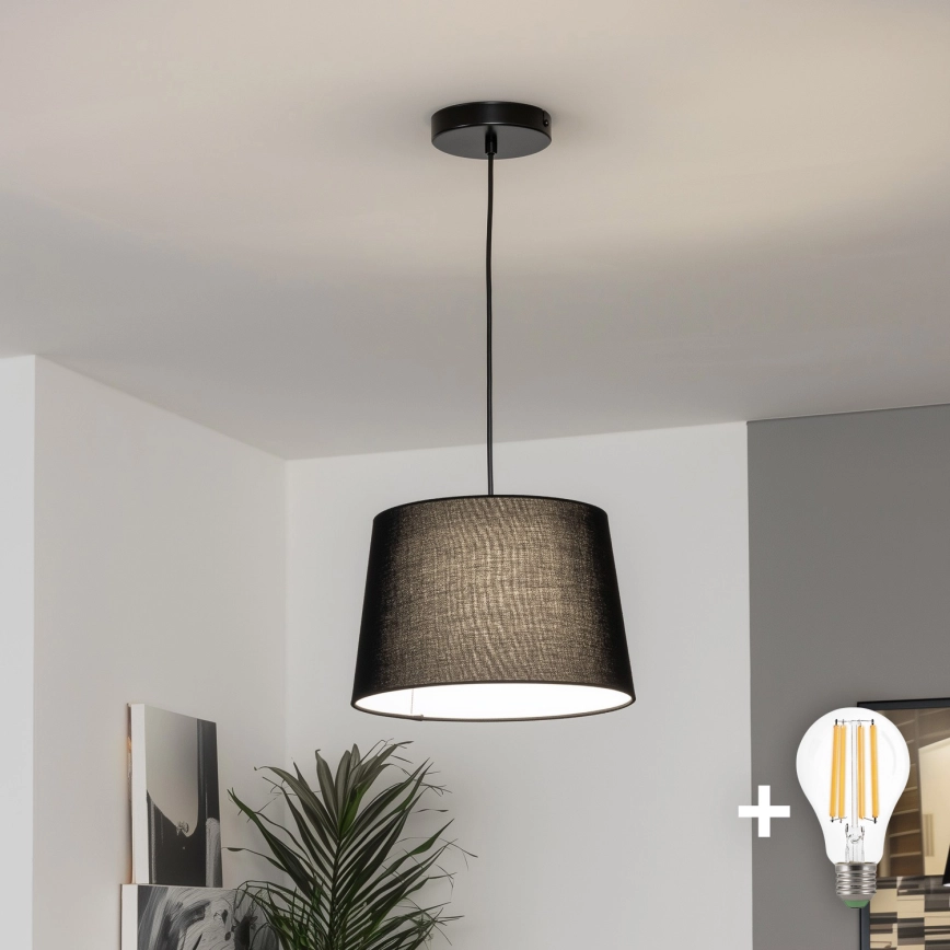 Brilagi - Lustre LED suspenso por cabo CERIA 1xE27/40W/230V diâmetro 30 cm preto