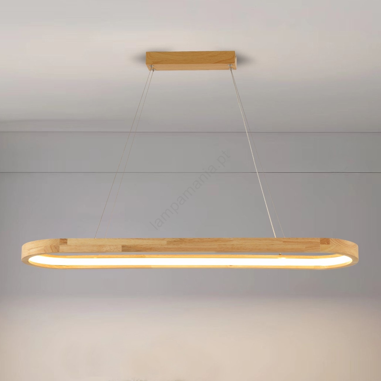 O Brilagi - Lustre LED suspenso por cabo UMEA WOOD LED/40W/230V 90x22 cm madeira de seringueira é uma solução de iluminação moderna para a sua casa. O candeeiro tira partido da tecnologia Módulo LED integrado, que proporciona uma iluminação eficaz e economizadora de energia. O design e a elevada qualidade da luz garantem uma longa vida útil e satisfação com a sua luz.
