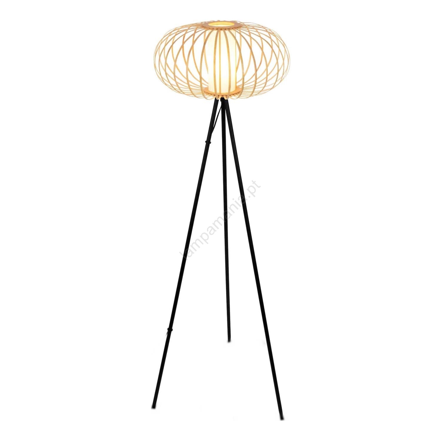 Briloner 1759011 - Candeeiro de pé 1xE27/10W/230V bambu/preto caracteriza-se por um design agradável e funcional.  Uma lâmpada com casquilho E27 é adequada para a iluminação Aqui, pode comprar outras lâmpadas a preços vantajosos. Terá um complemento interessante para a sua casa.