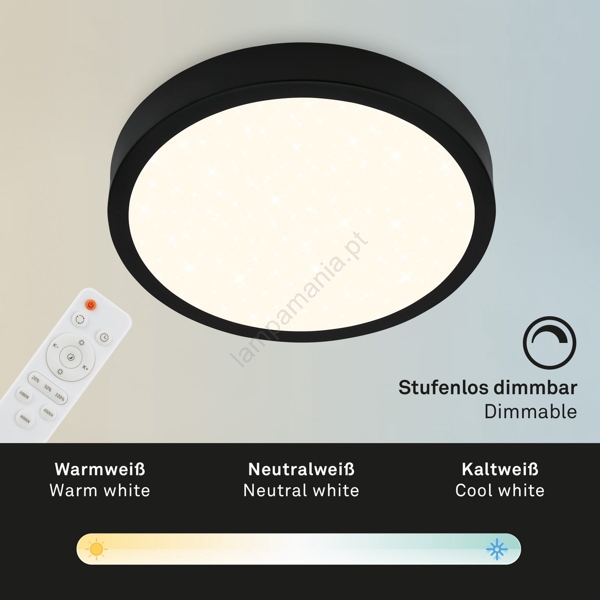 • Briloner 3704-015 - Iluminação de teto LED com regulação RUNA LED/22W/230V 2700-6500K preto + controlo remoto