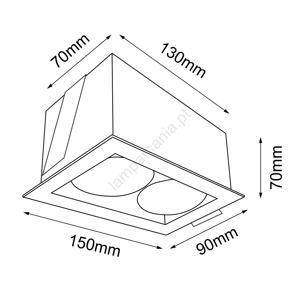 Brosline - Luminária de embutir 2xGU10/10W/230V preta caracteriza-se por um design agradável e funcional.  Uma lâmpada com casquilho GU10 é adequada para a iluminação Aqui, pode comprar outras lâmpadas a preços vantajosos. Terá um complemento interessante para a sua casa.