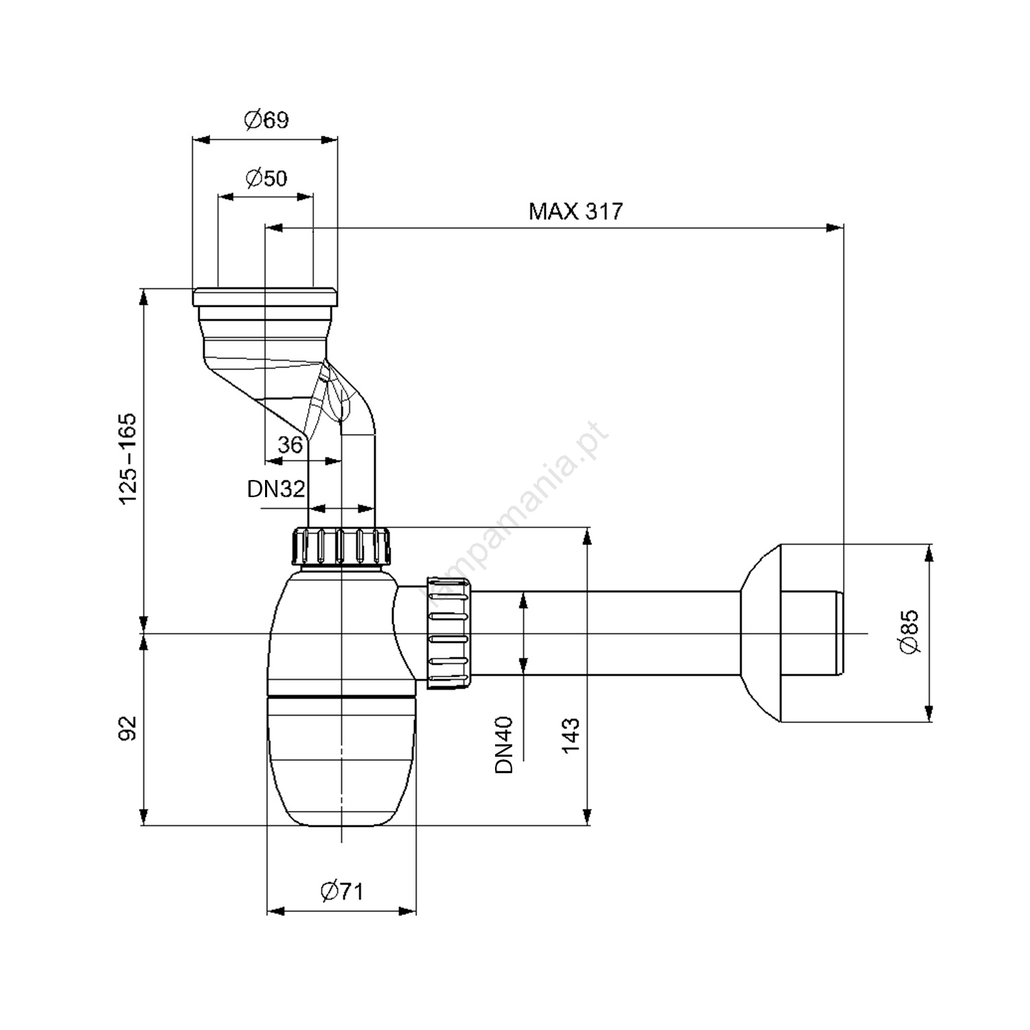 • Projetado para drenar a água residual do mictório para o sistema de esgoto.