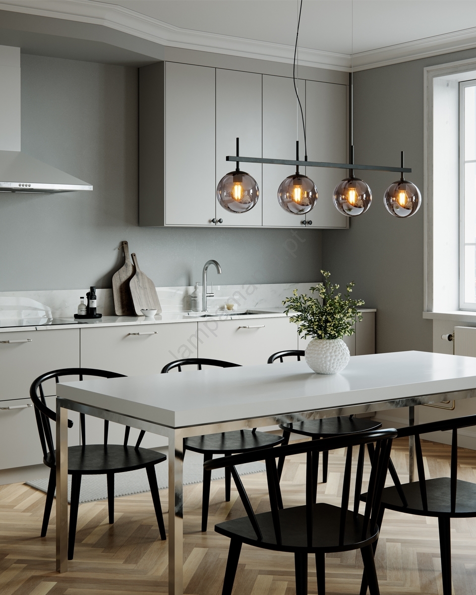 ByRydens - Lustre suspenso por cabo BOYLE 4xE27/8W/230V caracteriza-se por um design agradável e funcional.  Uma lâmpada com casquilho E27 é adequada para a iluminação Aqui, pode comprar outras lâmpadas a preços vantajosos. Terá um complemento interessante para a sua casa.