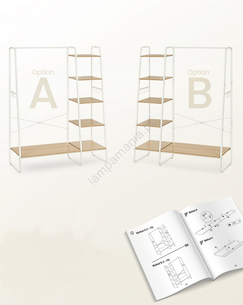 • Pendure casacos, camisas e calças na barra superior ao longo de todo o comprimento, nas 6 prateleiras armazene malas, sapatos, caixas,  chapéus, cachecóis, guarda-chuvas e outros itens essenciais.