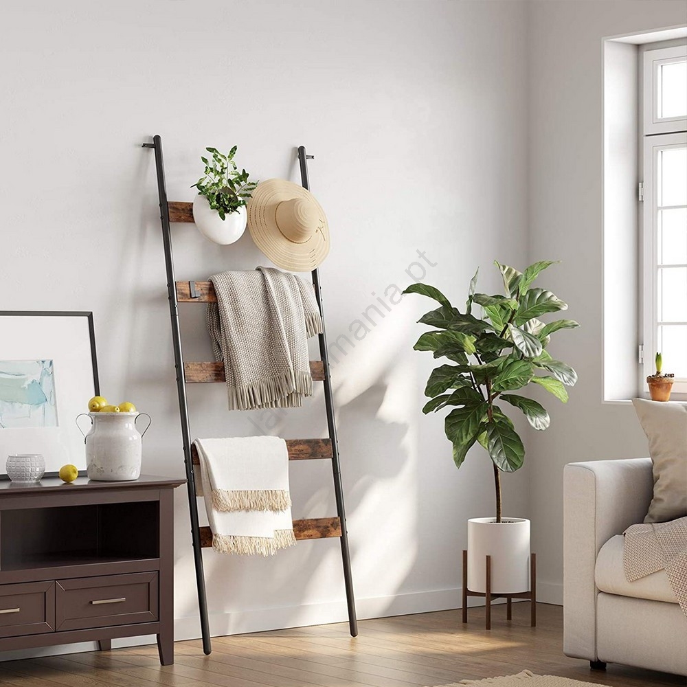 • Graças às 5 prateleiraspode guardar toalhas, mantas, objetos decorativos e pendurar chapéus e bolsas.