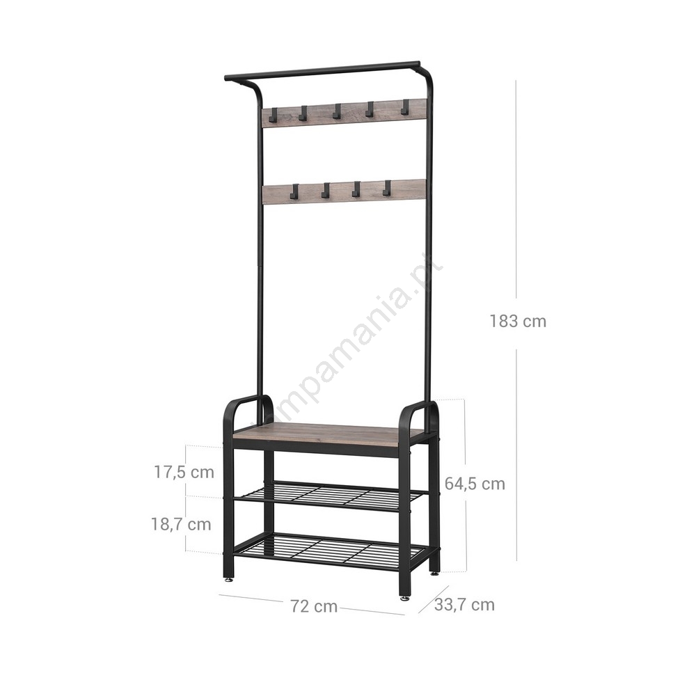 • Introduza no seu lar o charme da madeira e a robustez do metal com este estiloso cabideiro de design industrial.