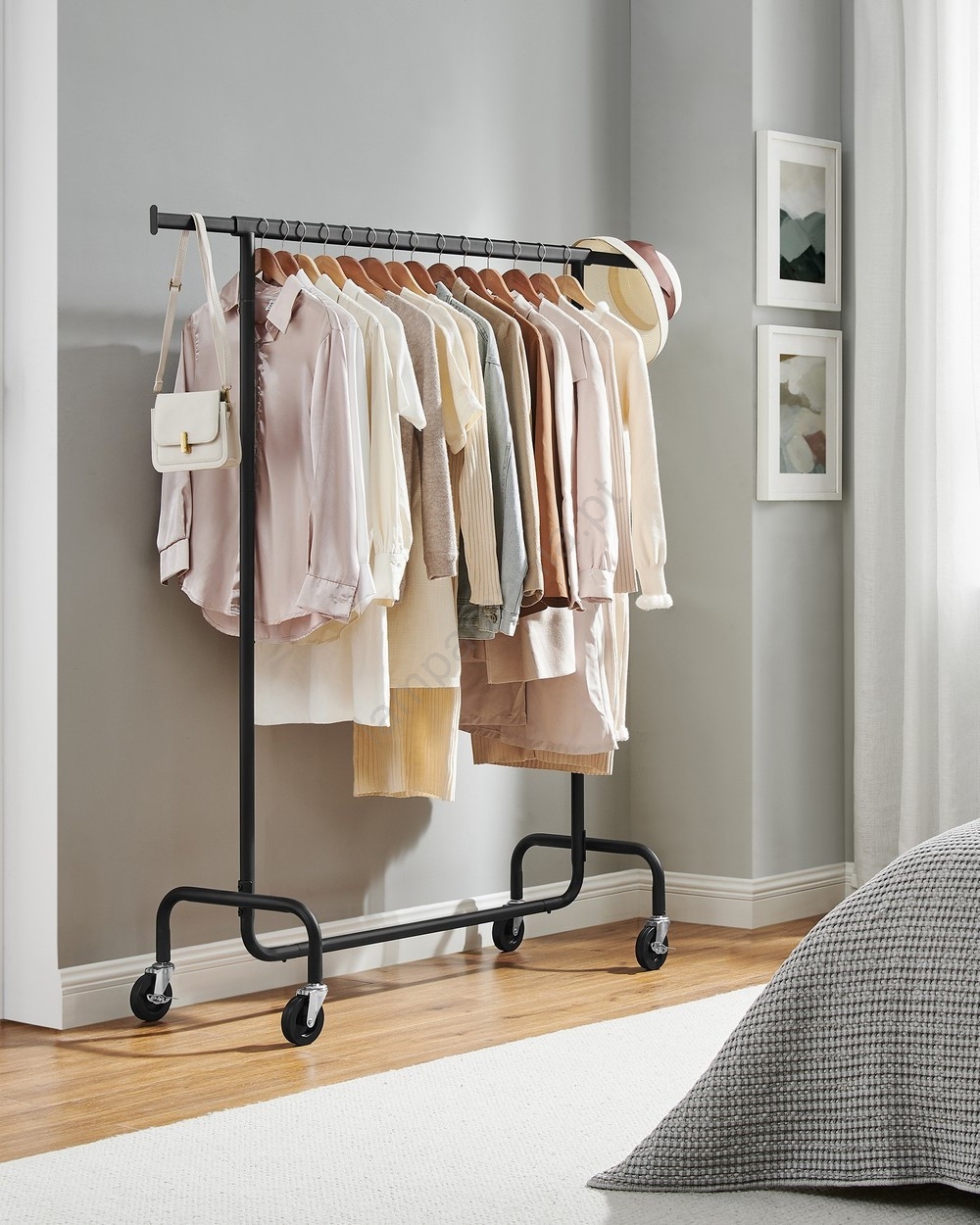 • A barra superior suporta até 130 kg (com carga distribuída uniformemente) sem oscilações nem tombos; a barra extensível oferece espaço adicional para as suas roupas, chapéus, bolsas, etc.