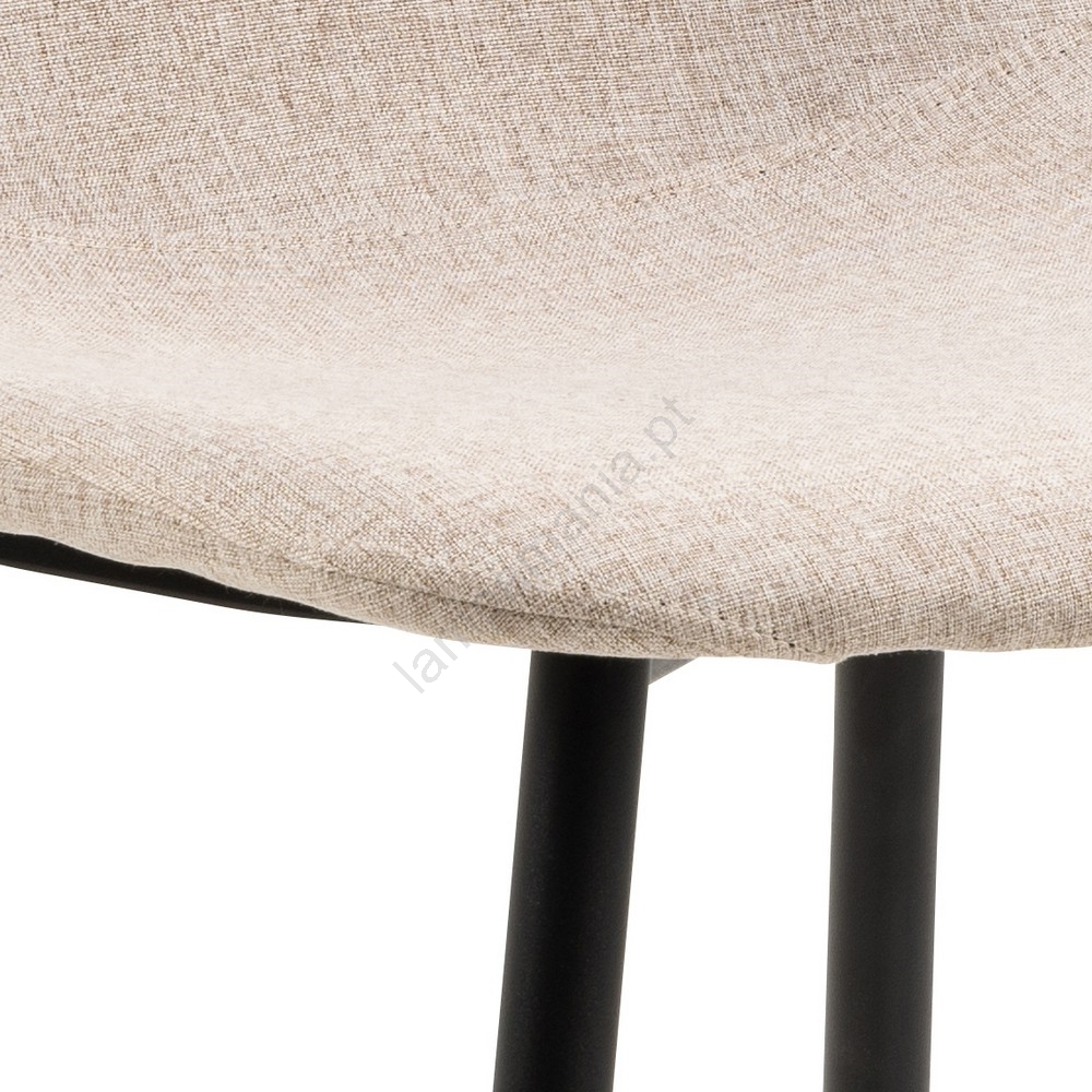 • O assento bege, adornado com costura horizontal, é sustentado por pernas finas pretas, que conferem ao design uma estética minimalista marcante.