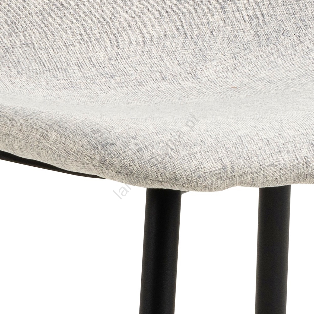 • O assento cinza claro, adornado com costura horizontal, é sustentado por pernas finas pretas, que conferem ao design uma estética minimalista marcante.