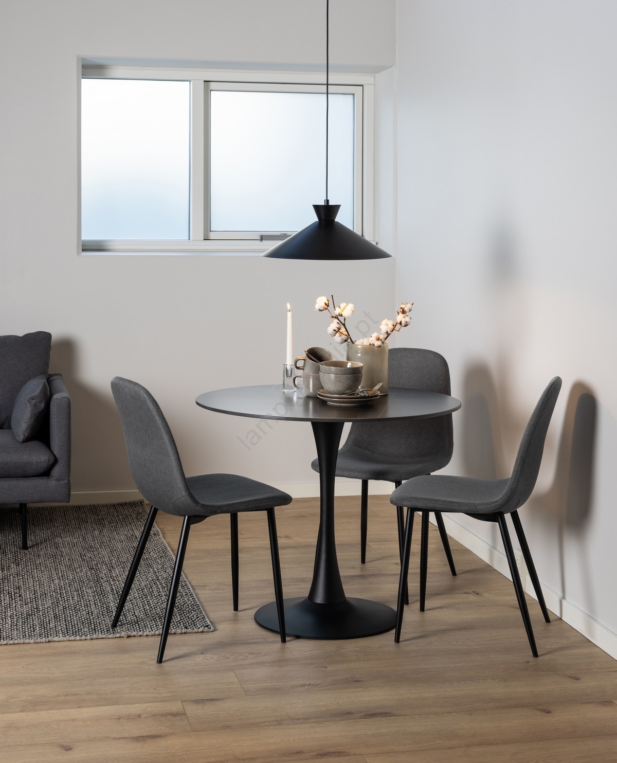 • Tecido Nesia cinza escuro, base em aço carbono fosco preto.
