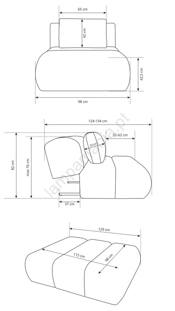 • Caixa n.º 1: 98 x 131 x 425 cm (36,5 kg).