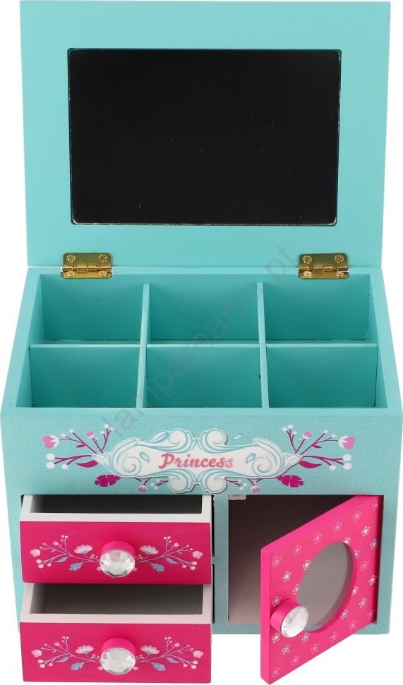 Caixa de jóias com espelho PRINCESS rosa/azul