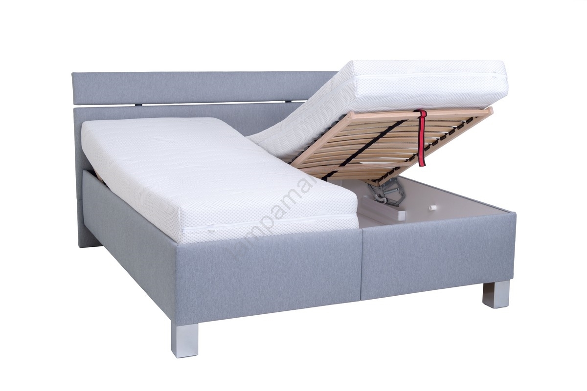 Cama estofada com colchão e espaço de arrumação ALIS 180x200 cm cinza claro