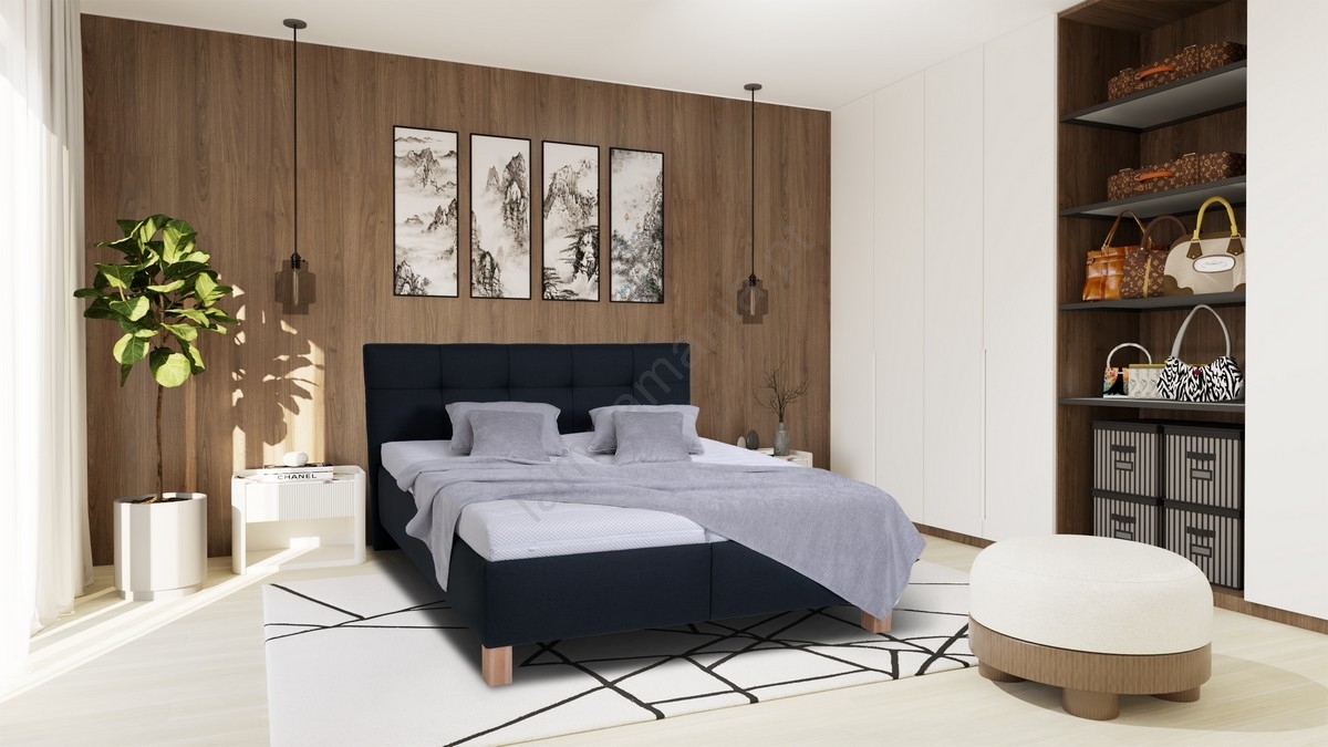 • Cama estofada MARIA 180x200 cm com arrumação, sem colchão, antracite