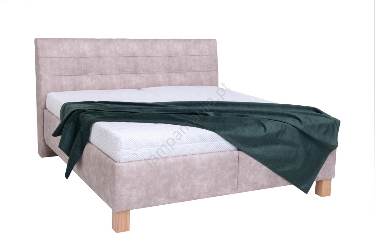 • Cama estofada com colchão e espaço de arrumação VIOLET 160x200 cm bege