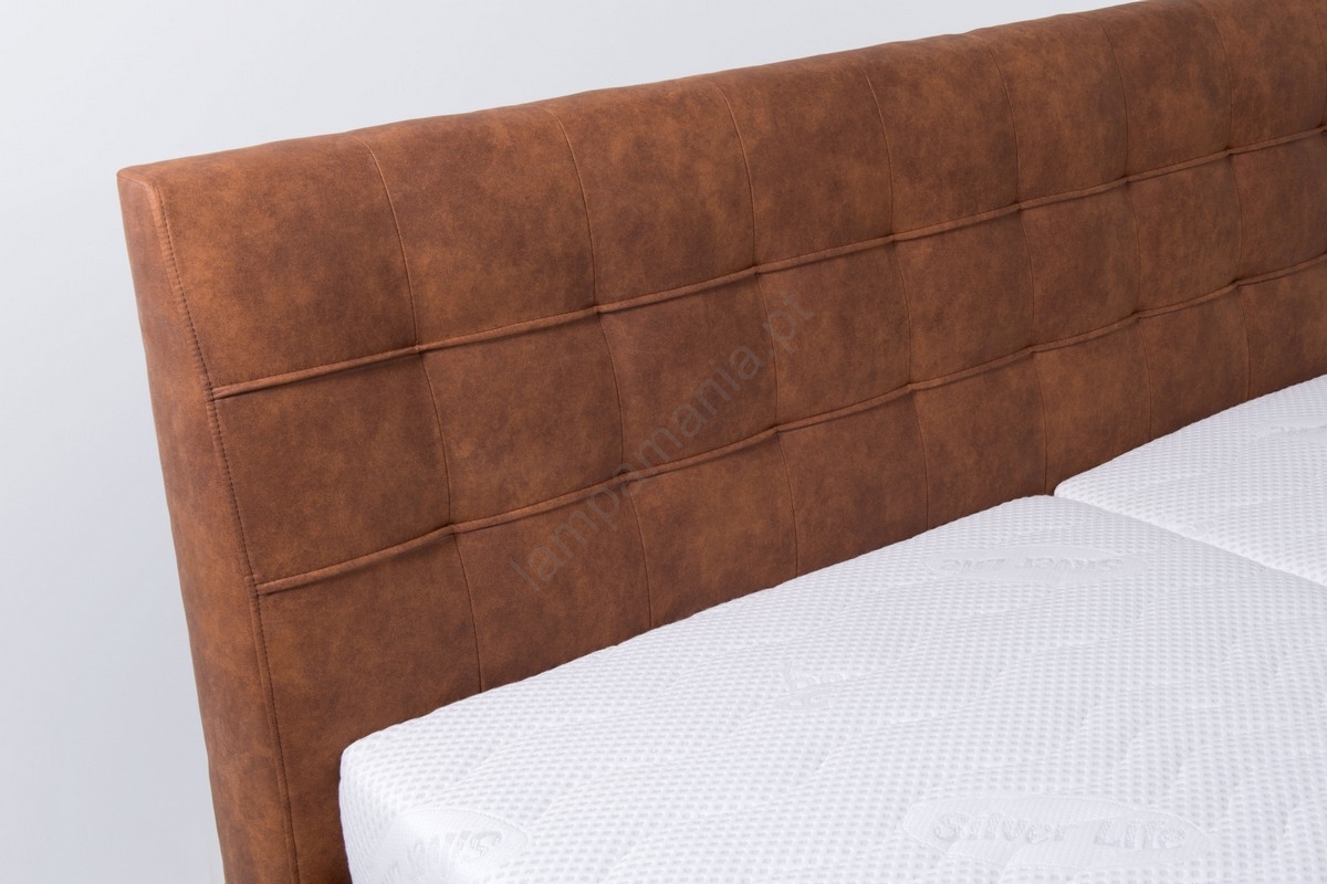 • Cama estofada VIOLET 180x200 cm com colchão e espaço de arrumação, castanho conhaque