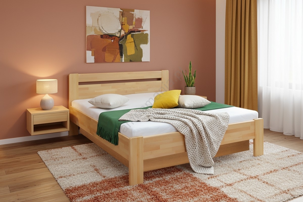 Cama de casal com estrado e espaço de armazenamento de madeira maciça AMARA 180x200 cm faia