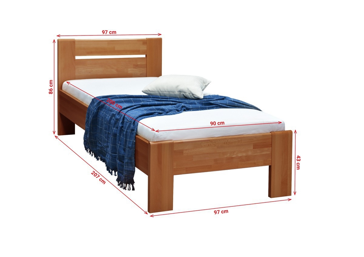 • Cama individual em madeira maciça AMBER 90x200 cm, faia