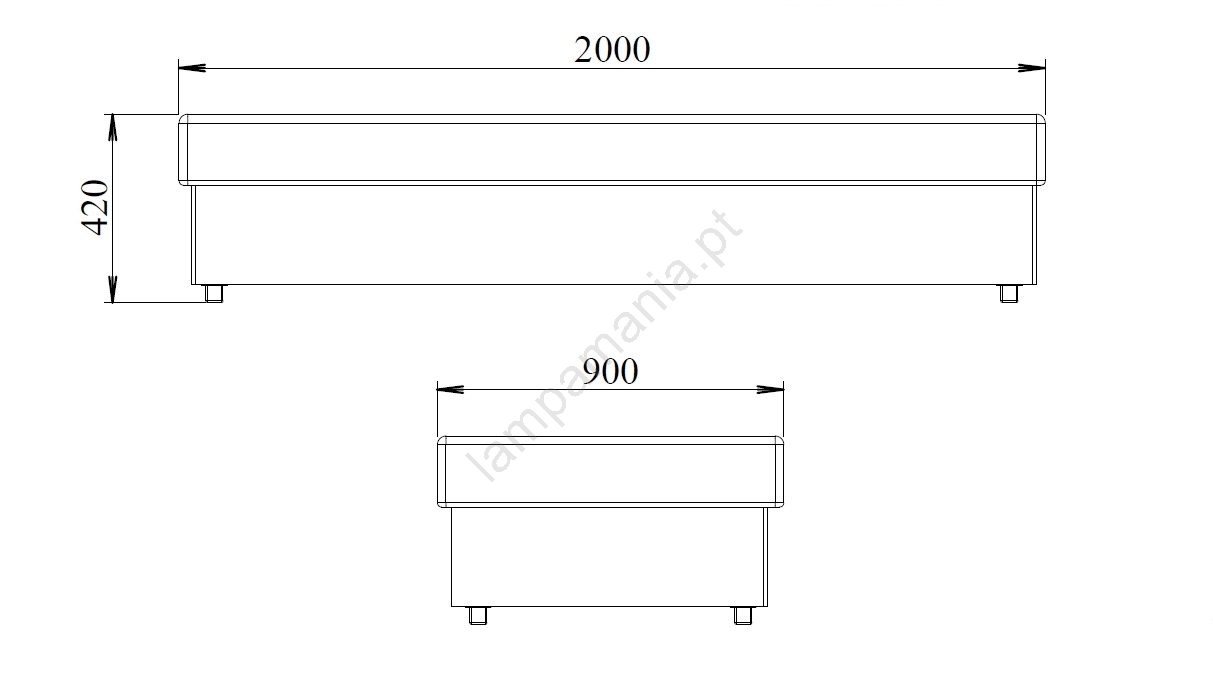 • Dimensão da superfície de descanso: 90 x 200 cm.