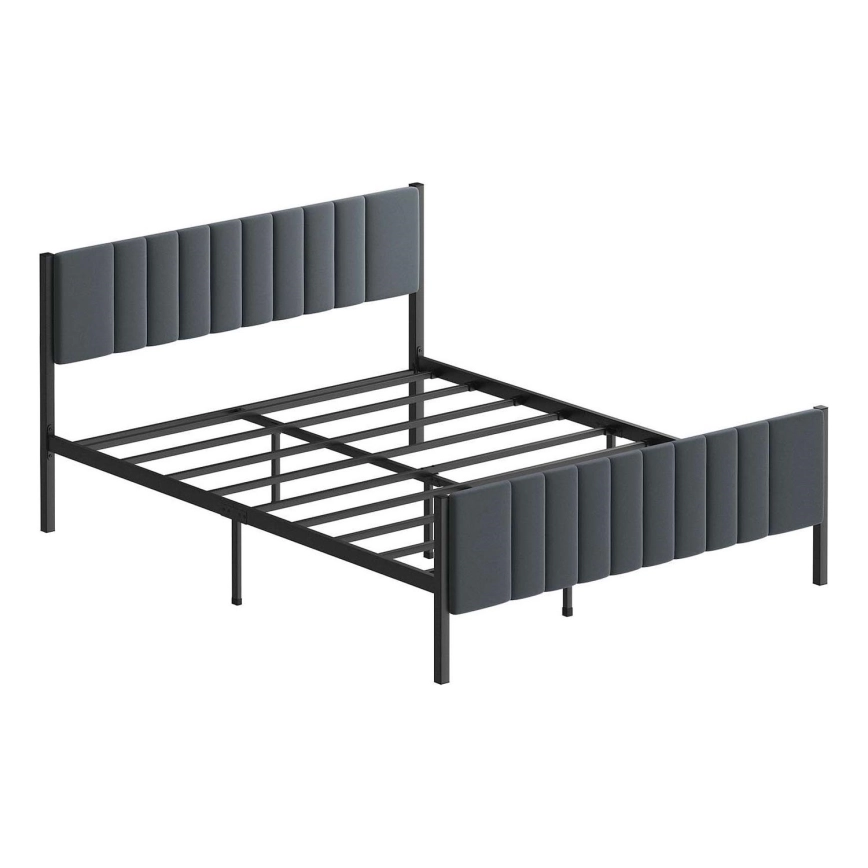 • Cama metálica de casal KAROM 140x200 cm, cinzenta, suporta até 200 kg