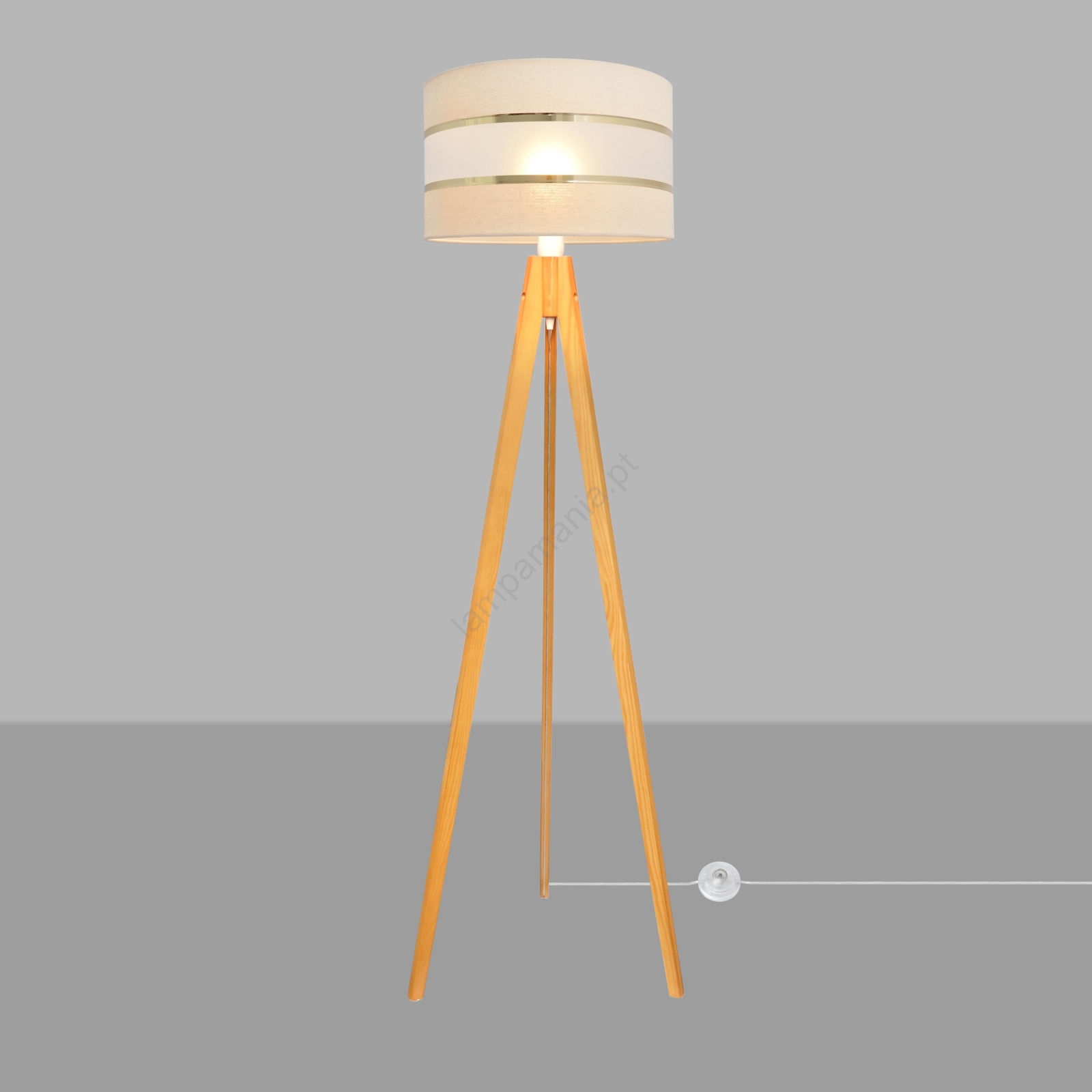 Candeeiro de chão HELEN 1xE27/15W/230V creme/dourada/carvalho caracteriza-se por um design agradável e funcional.  Uma lâmpada com casquilho E27 é adequada para a iluminação Aqui, pode comprar outras lâmpadas a preços vantajosos. Terá um complemento interessante para a sua casa.