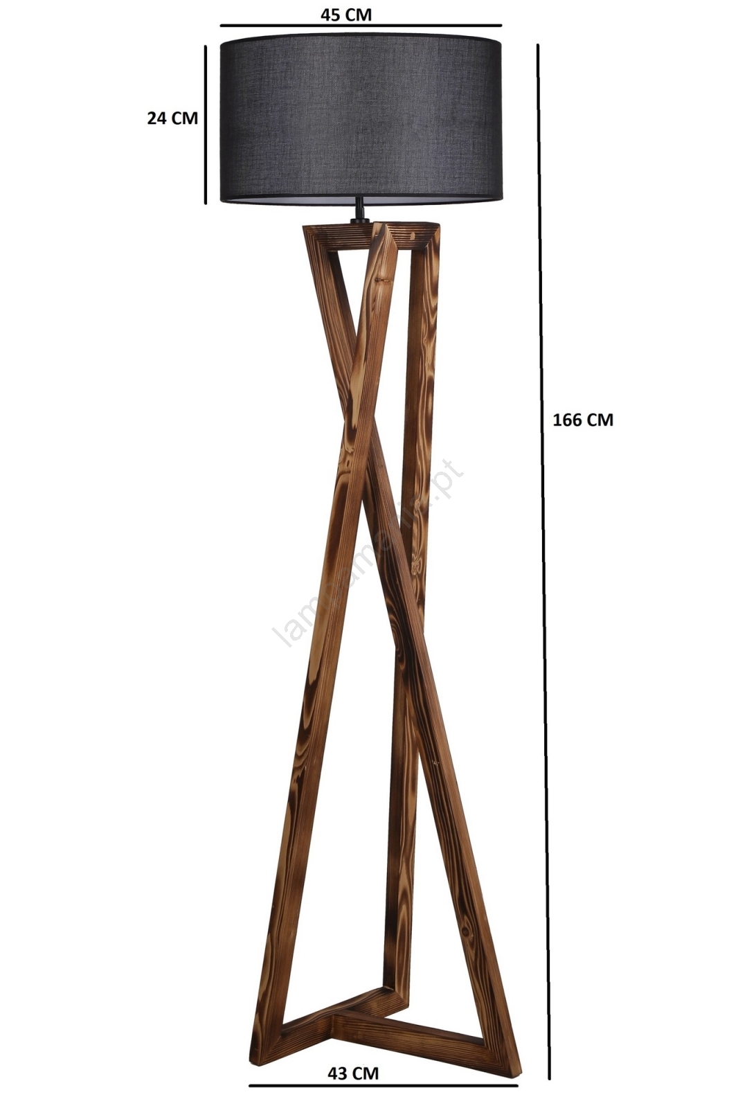 Candeeiro de chão MACKA 1xE27/60W/230V preto/castanho caracteriza-se por um design agradável e funcional.  Uma lâmpada com casquilho E27 é adequada para a iluminação Aqui, pode comprar outras lâmpadas a preços vantajosos. Terá um complemento interessante para a sua casa.