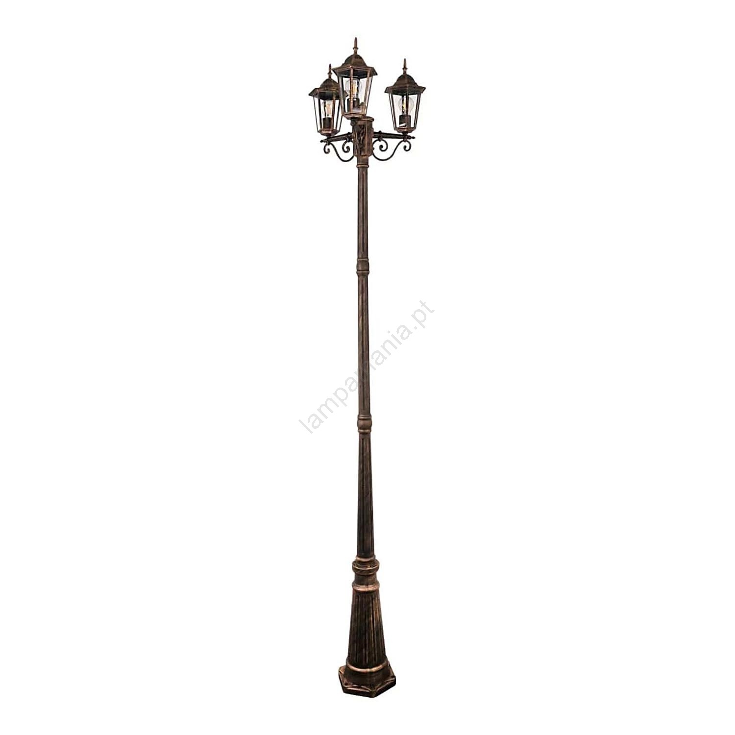 Luminária exterior 3xE27/20W/230V IP43 2,58 m pátina caracteriza-se por um design agradável e funcional.  Uma lâmpada com casquilho E27 é adequada para a iluminação Aqui, pode comprar outras lâmpadas a preços vantajosos. Terá um complemento interessante para a sua casa.