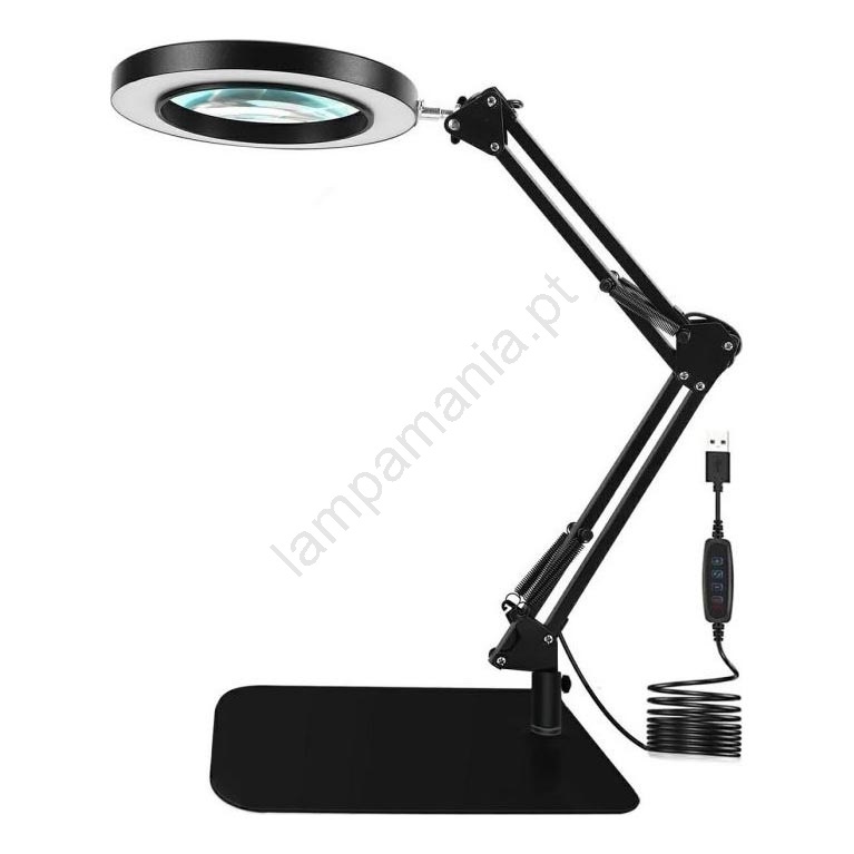 Candeeiro de mesa LED com regulação com uma lupa LED/11W/5V 3000-6000K preto