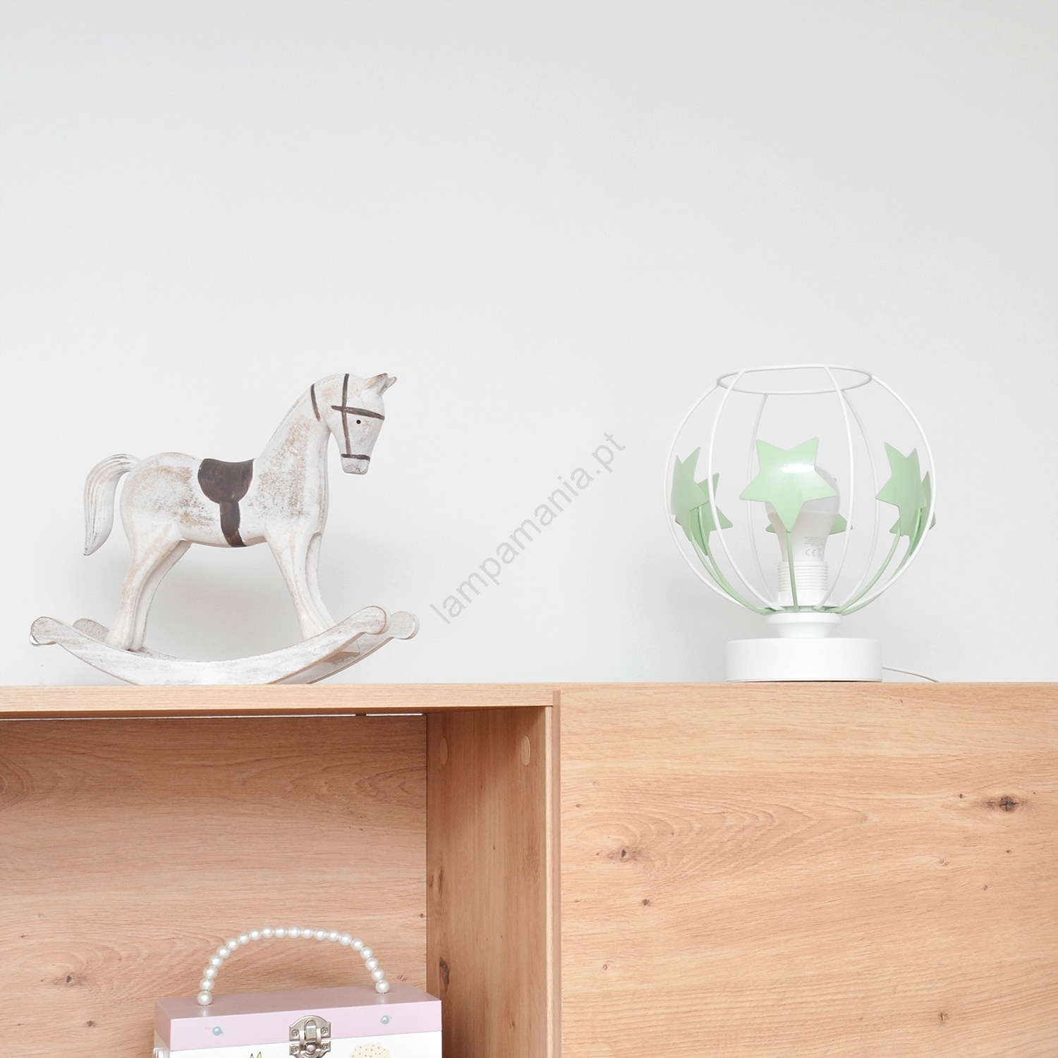 • Candeeiro de mesa para crianças STARS 1xE27/15W/230V verde/branco