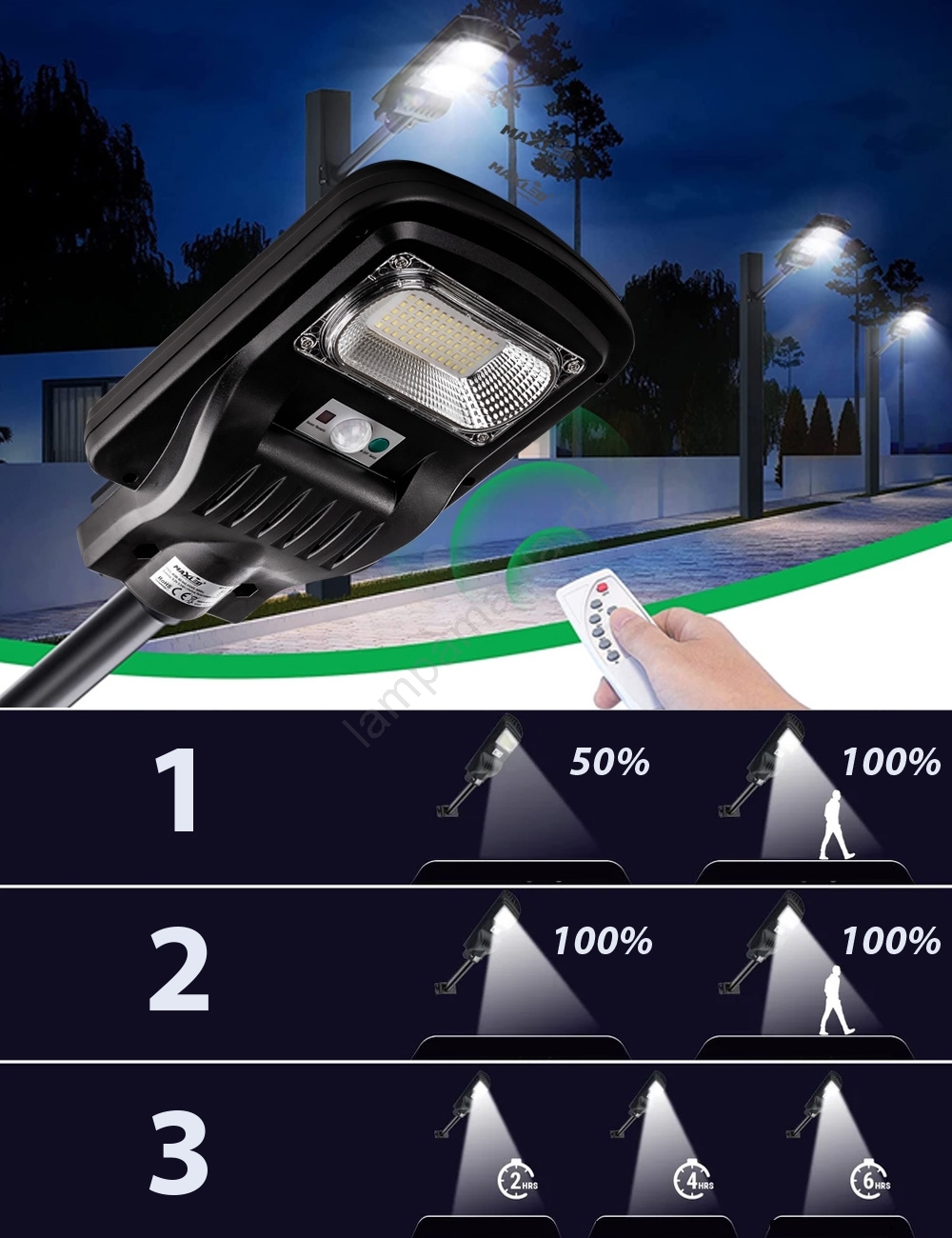 LED Candeeiro de rua solar regulável com sensor LED/60W/6V 5500 mAh 6500K IP65 preto + comando
