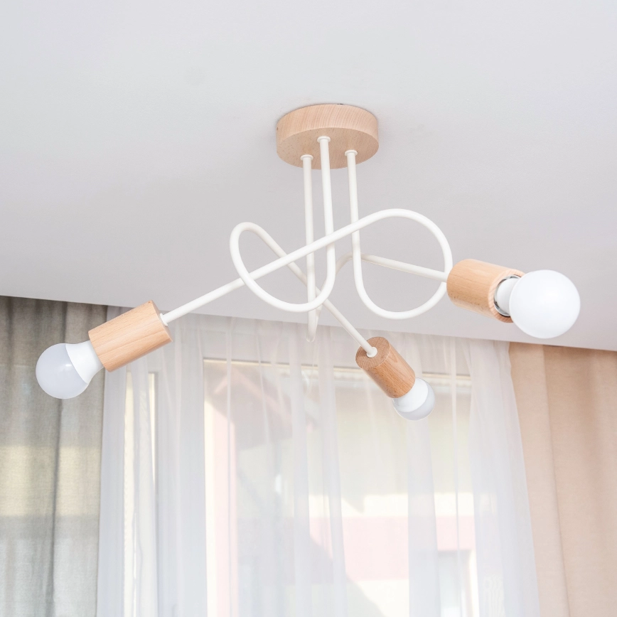Candeeiro de tecto de montagem aparente OXFORD 3xE27/15W/230V pinho/creme