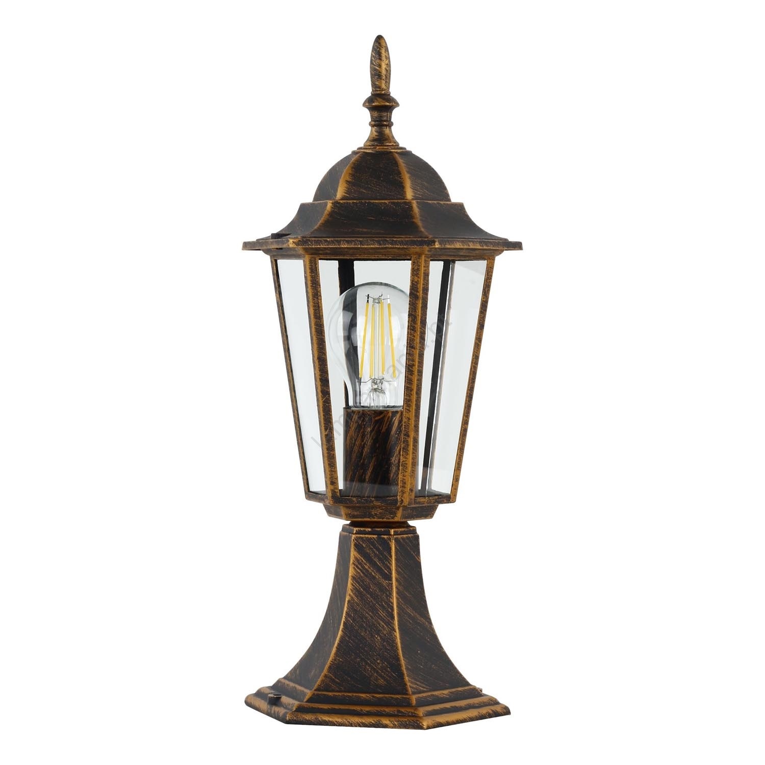 Candeeiro exterior ARRAIA 1xE27/15W/230V IP44 bronze pátina caracteriza-se por um design agradável e funcional.  Uma lâmpada com casquilho E27 é adequada para a iluminação Aqui, pode comprar outras lâmpadas a preços vantajosos. Terá um complemento interessante para a sua casa.