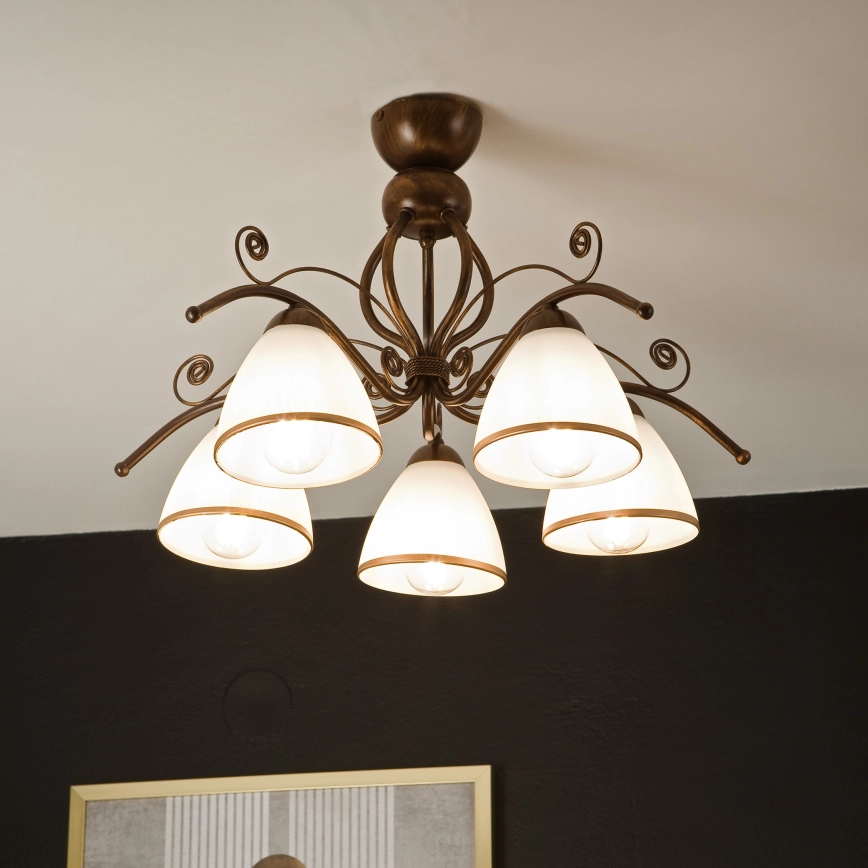 Candeeiro integrado RETRO 5xE27/60W/230V bronze pátina