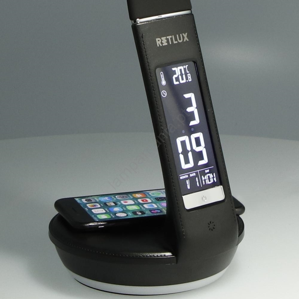 Lâmpada de mesa LED regulável com carregamento sem fio Qi 5W e display LED/6W/230V/1xCR2032 3000/4000/6000K preta